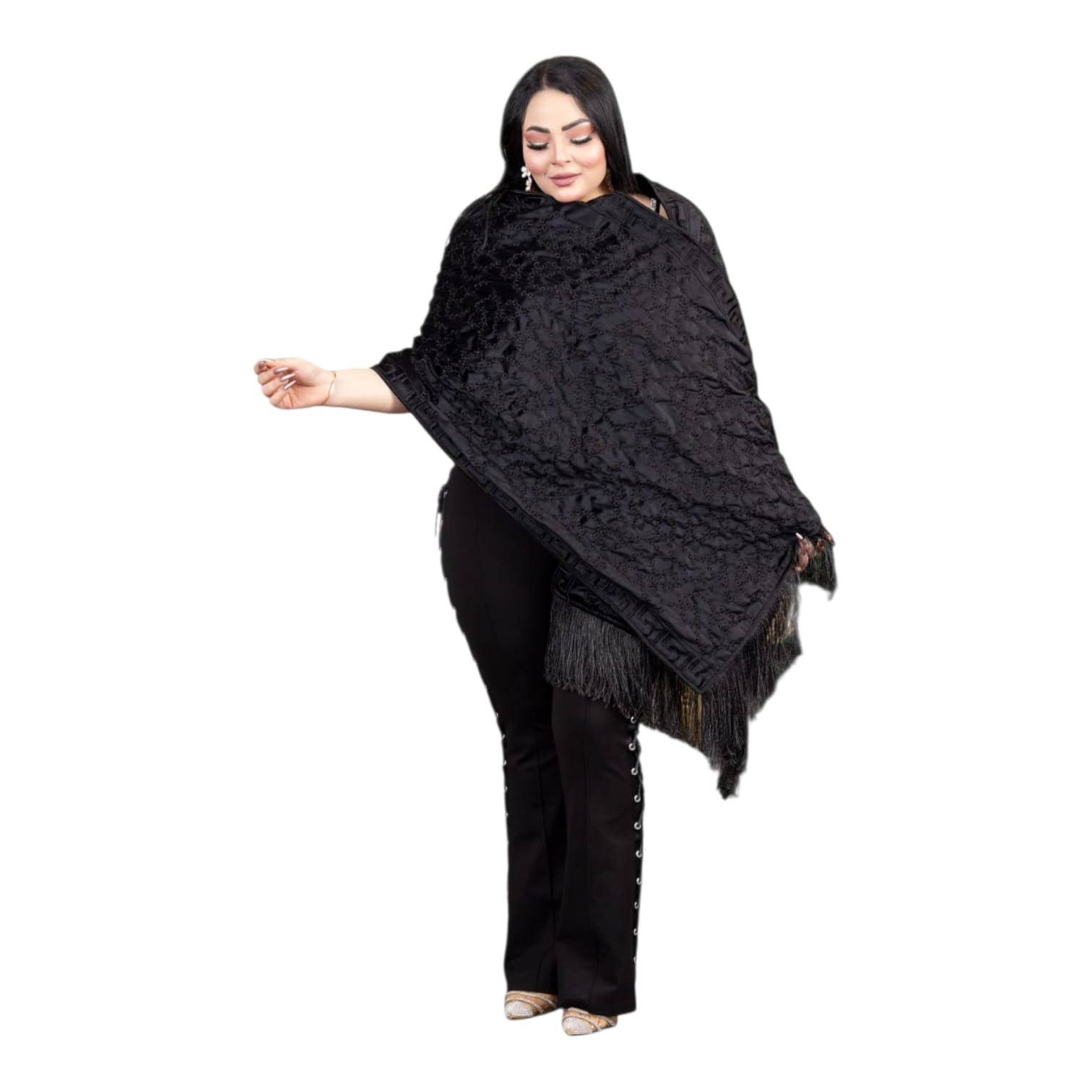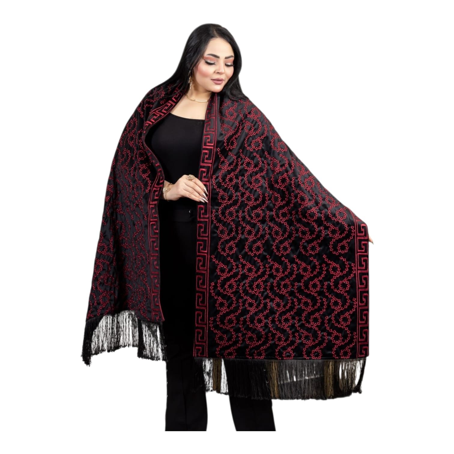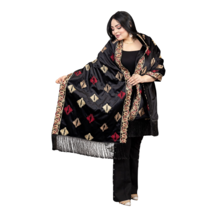 شال مستطيل مطرز بالكامل