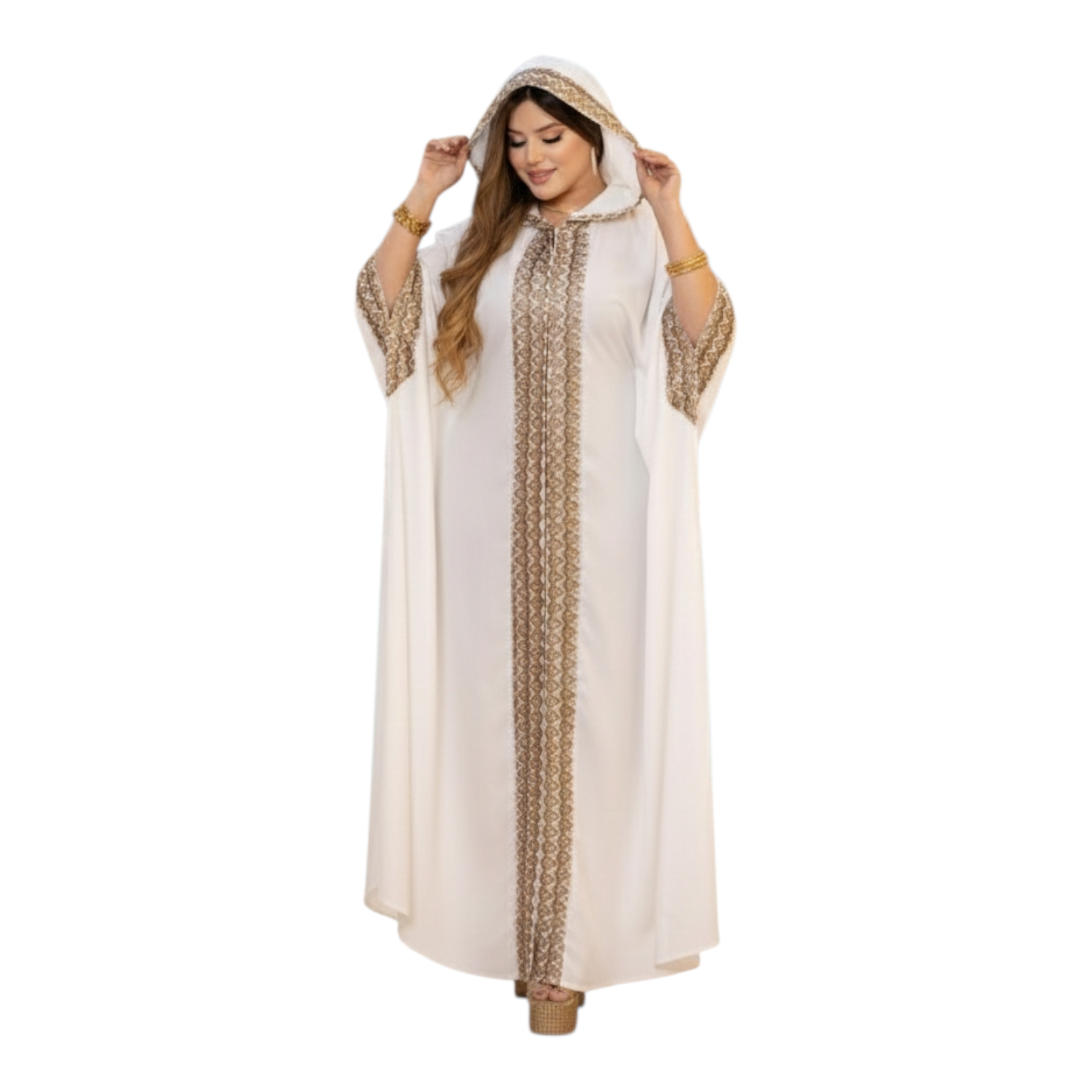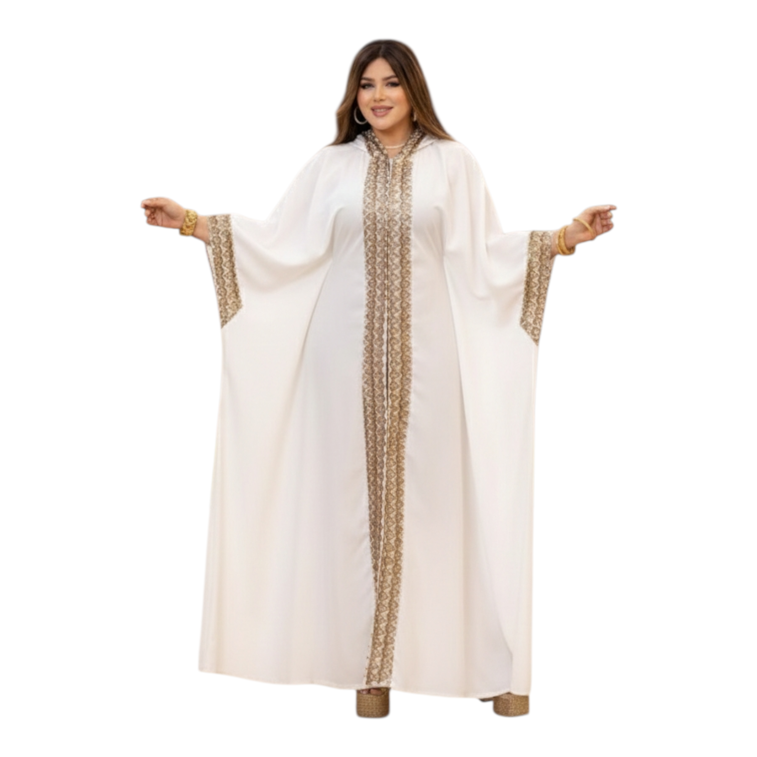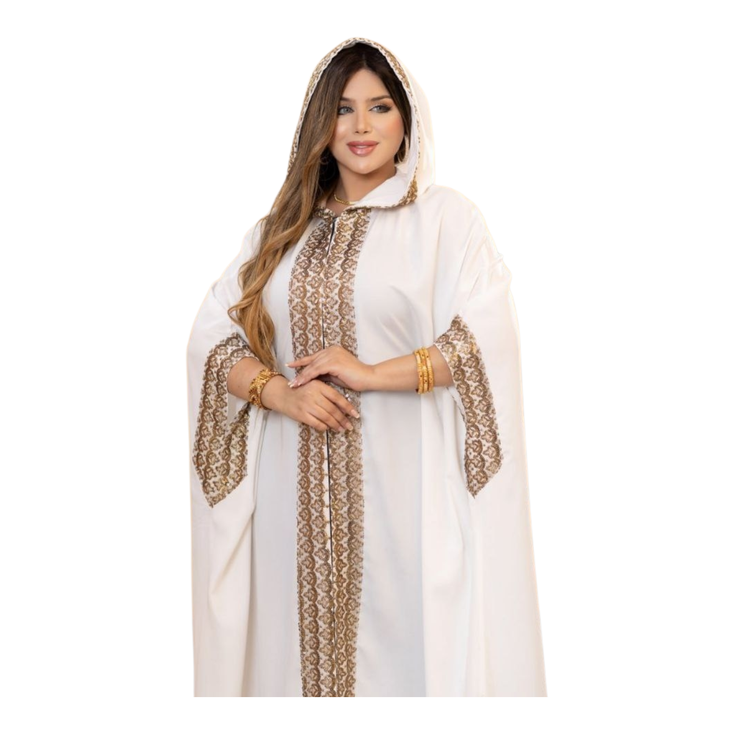 تطريز بطول الكاب وعلي الكم من التطريز الهندي المطعم بالترتر مع تطريز على الكابيشو
