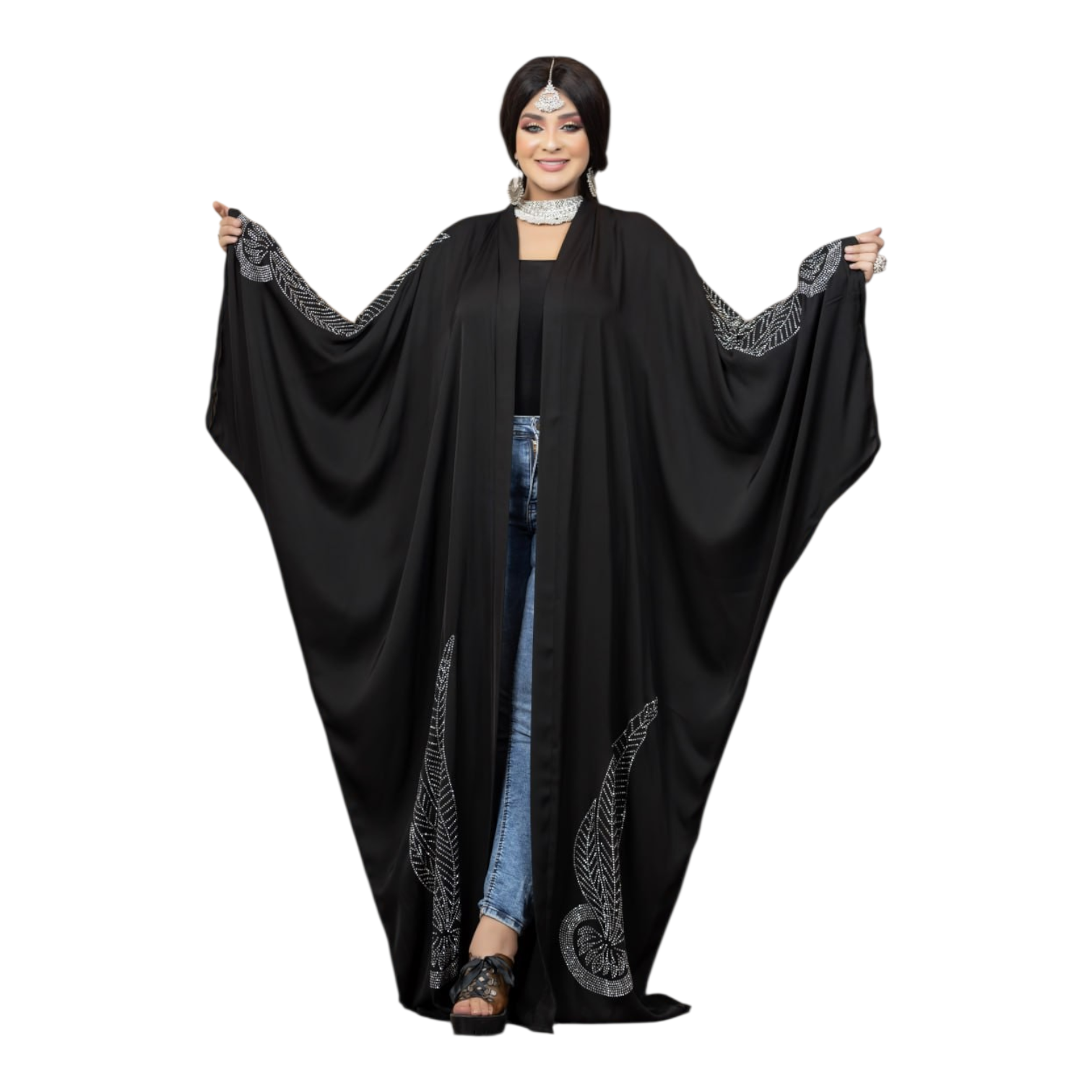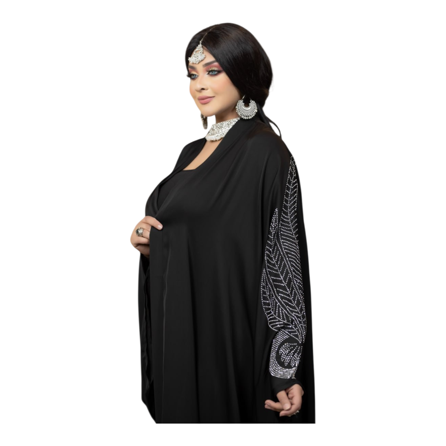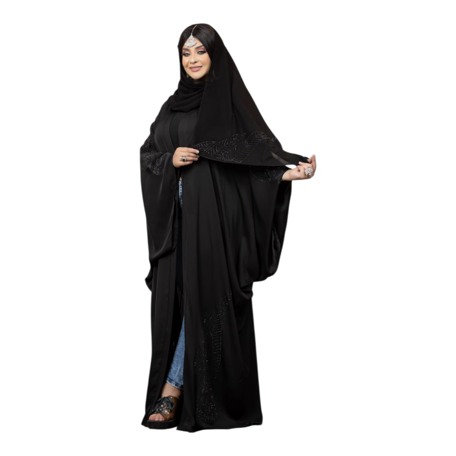 طرحه شيفون فورمال بلاك عليها نفس الستراس للعبايه