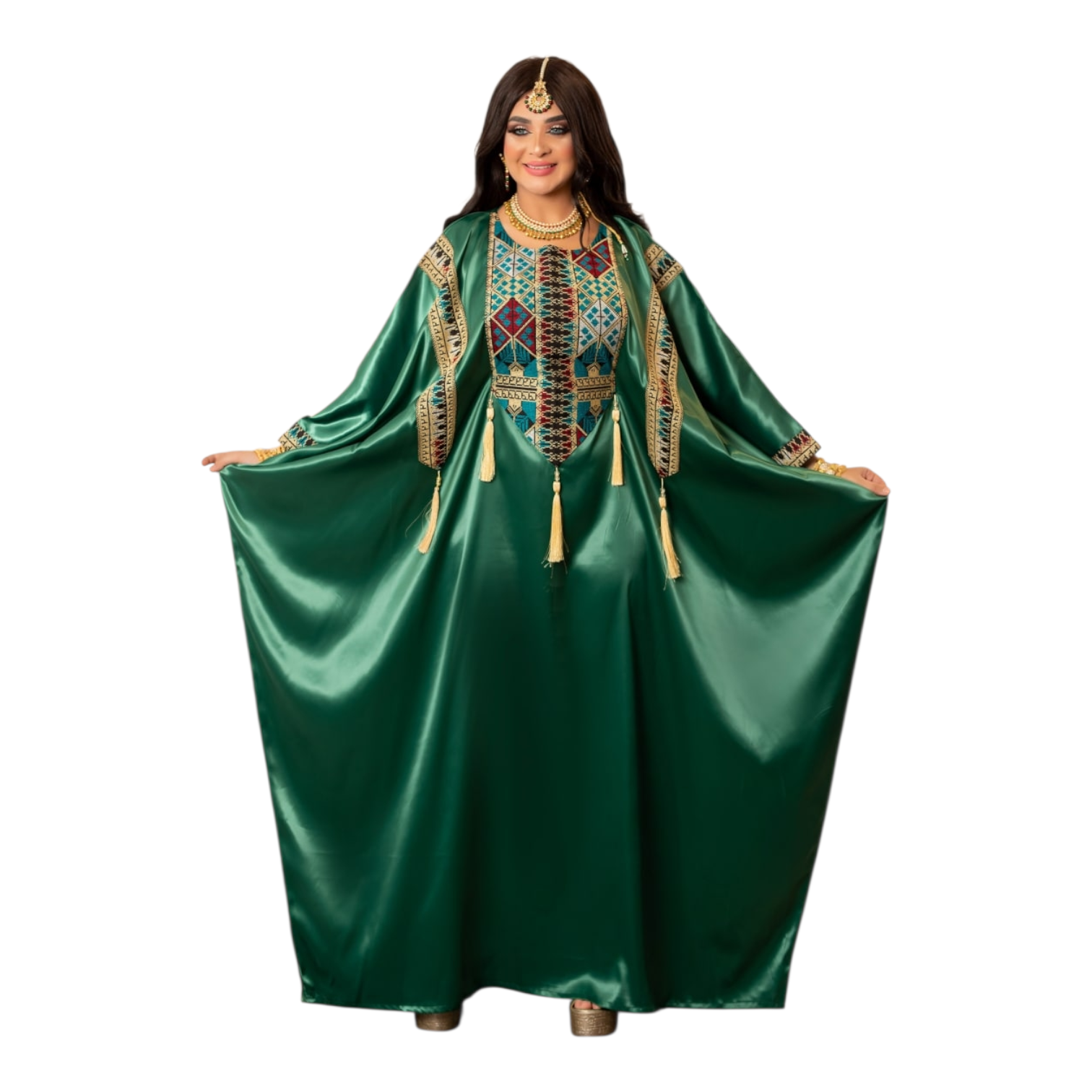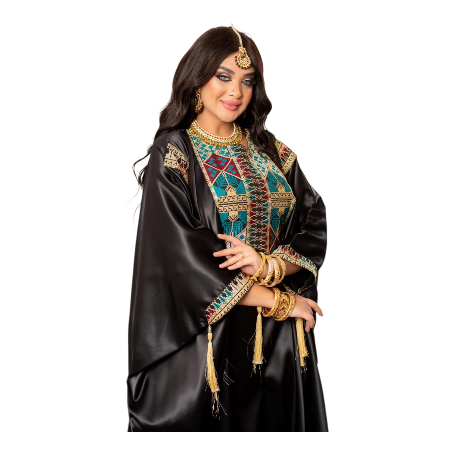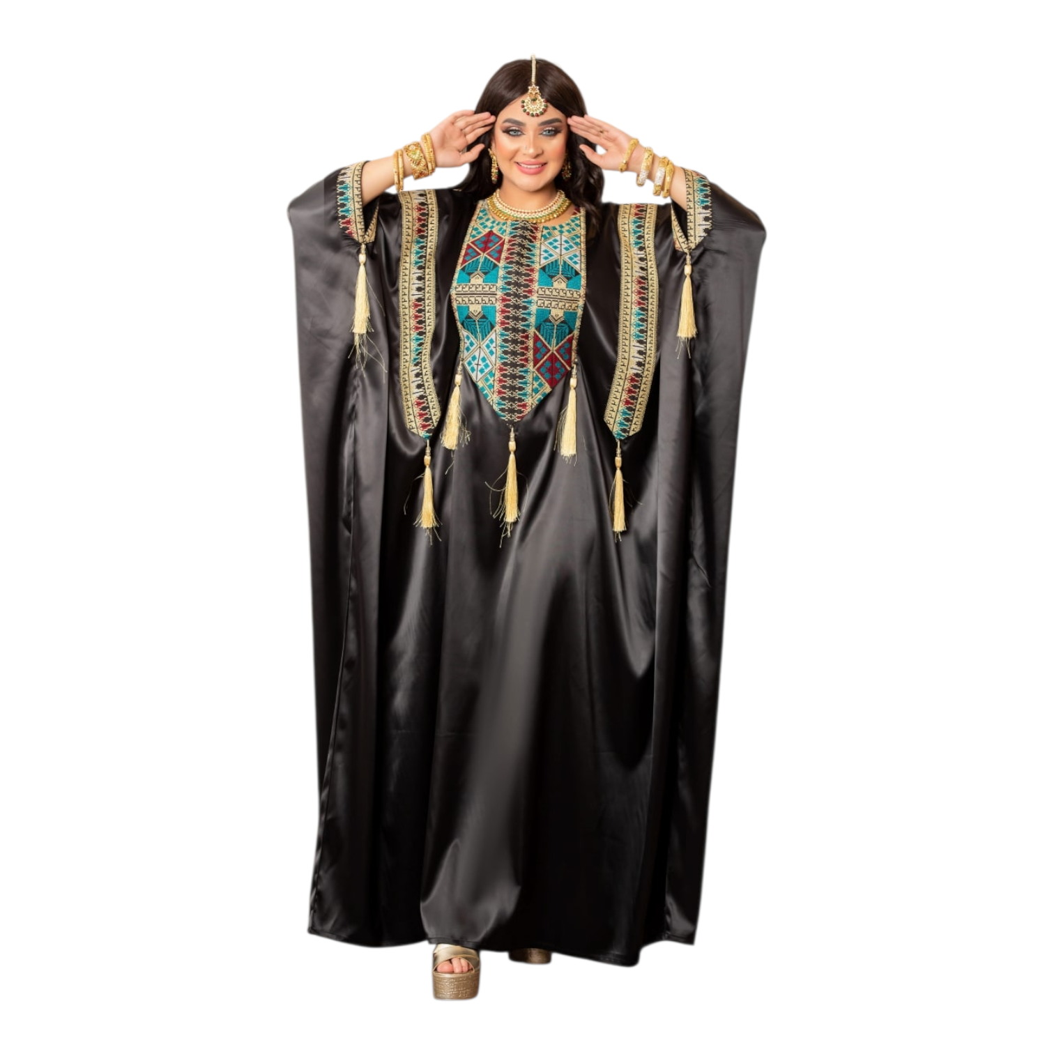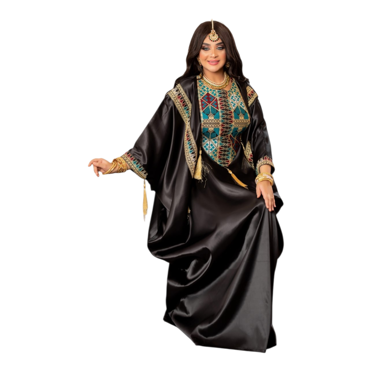 التطريز ايتامين سيناوي بالوان زاهيه وانيقه مزود بشراشيب ع الصدر والكم
