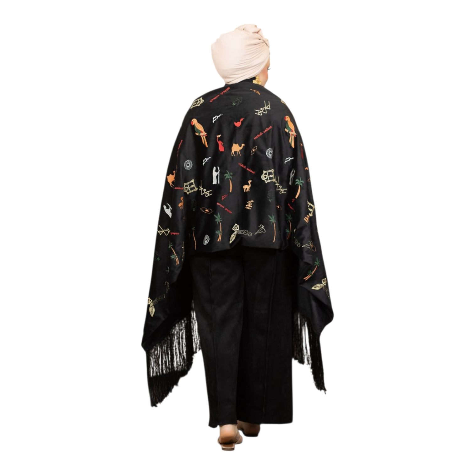 شال مستطيل مطرز بالكامل وآخره شراشيب