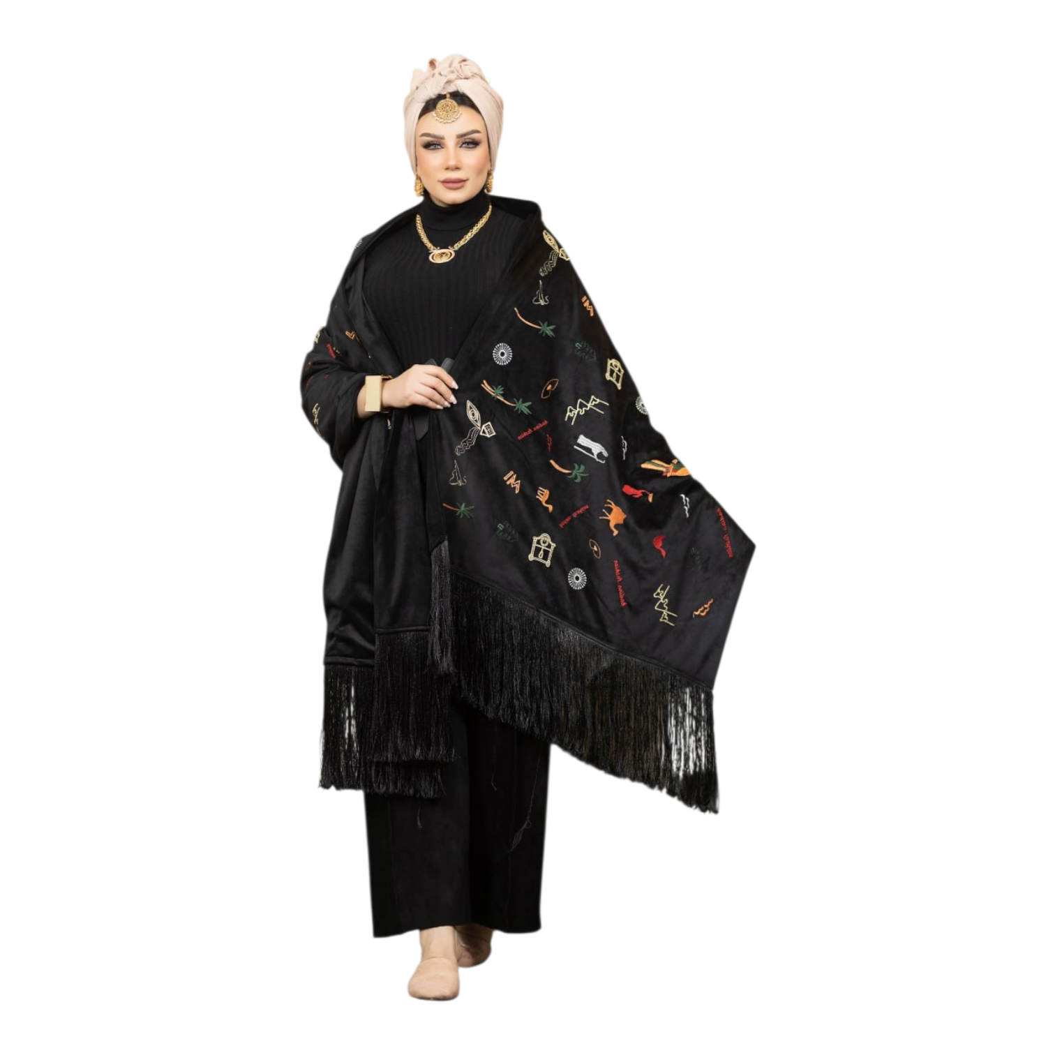 الشراشيب جميله حول الشال من اجود خامات الشراشيب