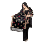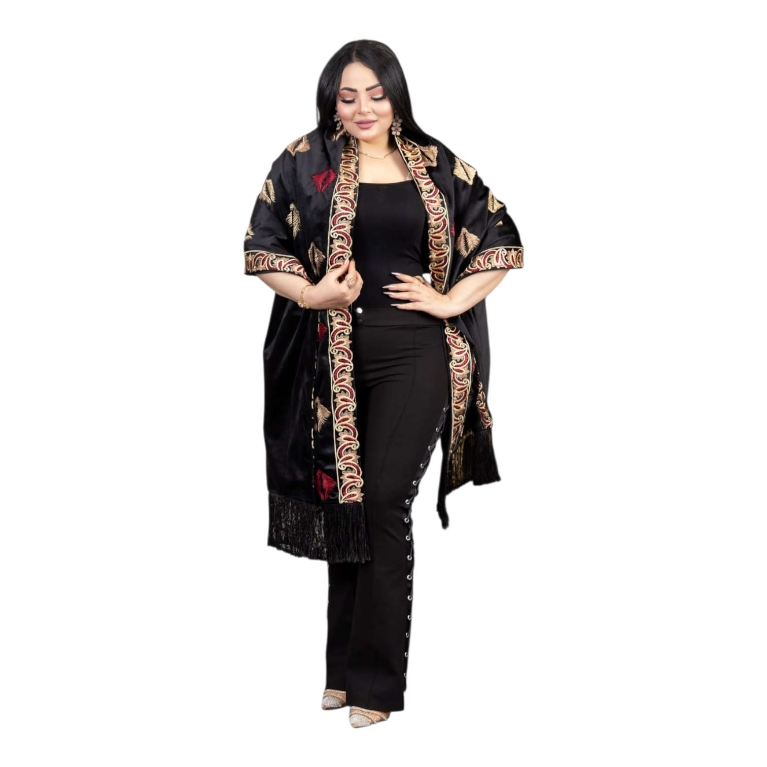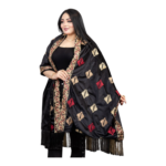 شال مستطيل مطرز بالكامل وآخره شراشيب