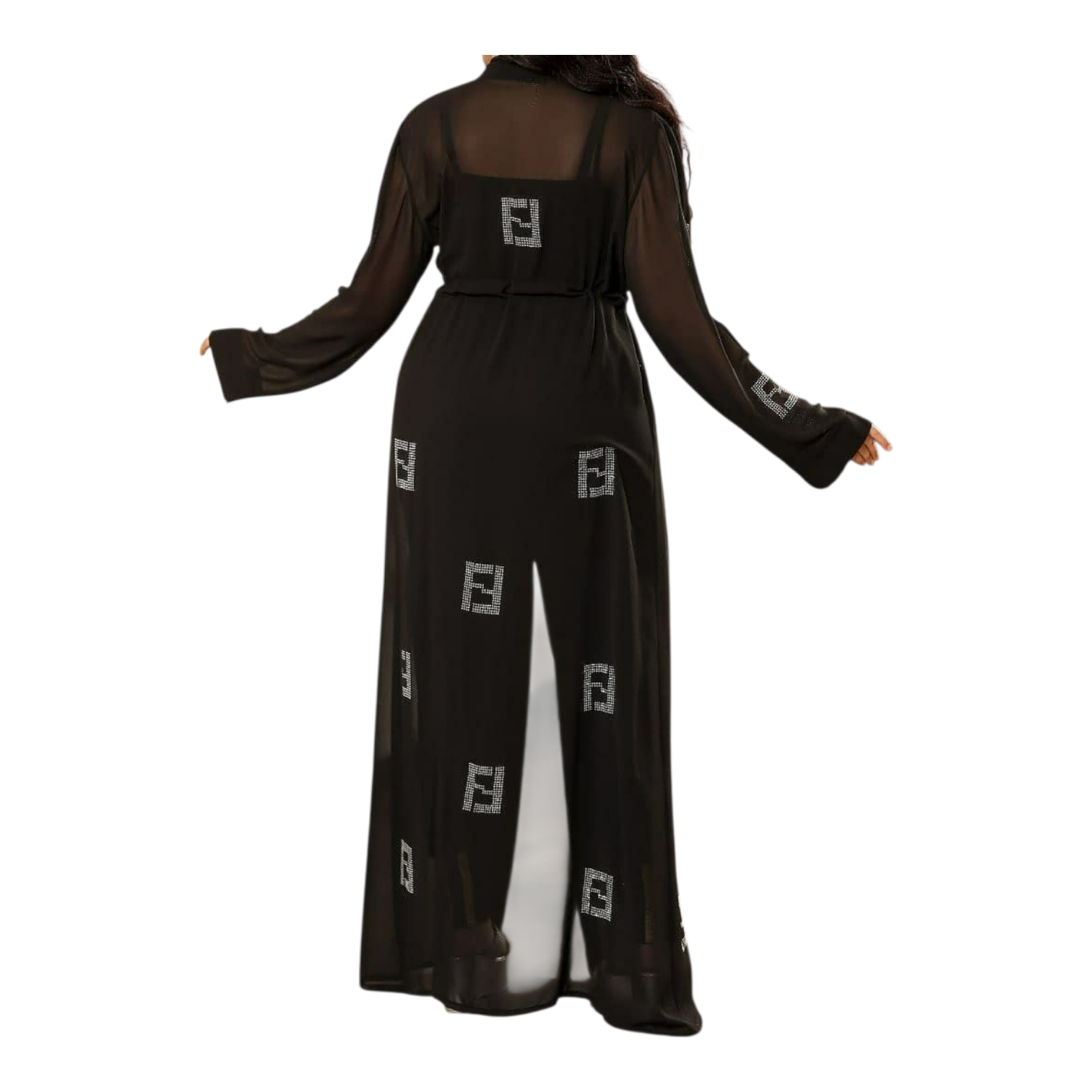 الطقم مكوّن من: كاردي شيفون كوري + دريس بكم من ITY مستورد + طرحة + حزام.