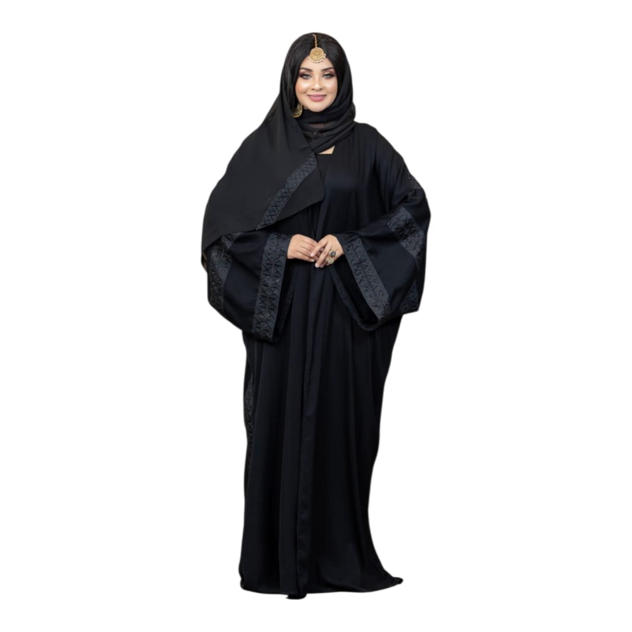 طرحه شيفون فورمال بلاك عليها نفس تطريز العبايه